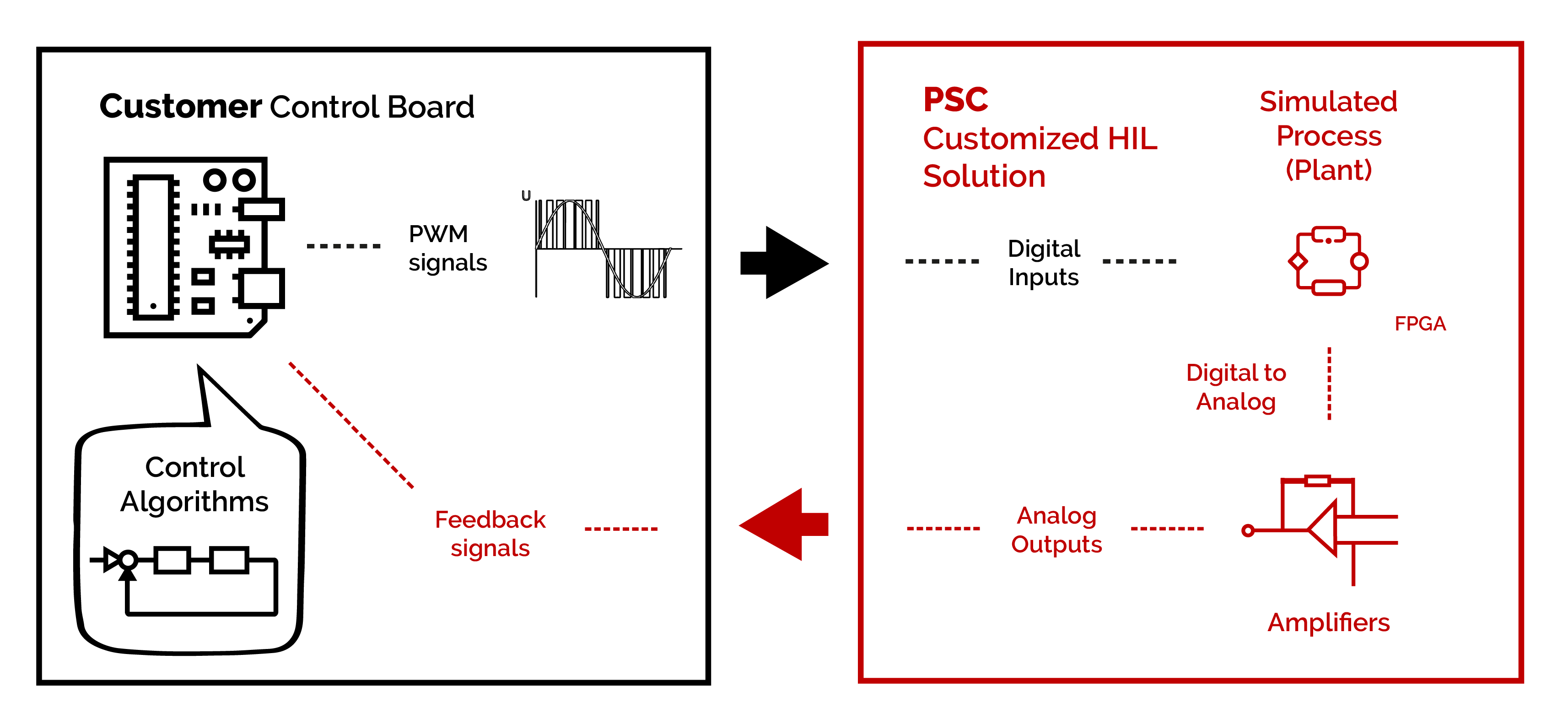 Power Smart Control bets all its experience and know-how going one step further: we develop your customized HIL system, from the modeling of the system to the final test of the customized hardware.